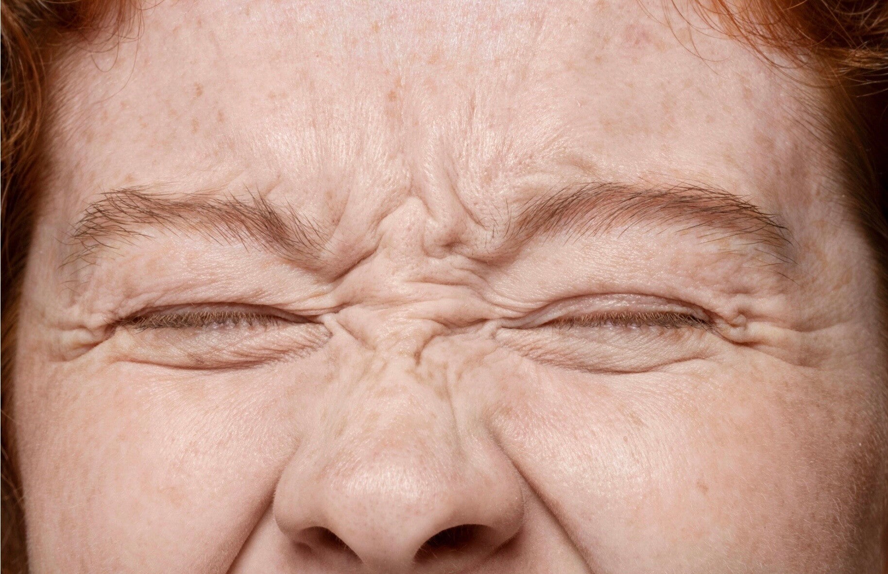 Con il passare del tempo, il viso può mostrare segni di espressione, come piccole rughe sulla fronte, attorno agli occhi o tra le sopracciglia.